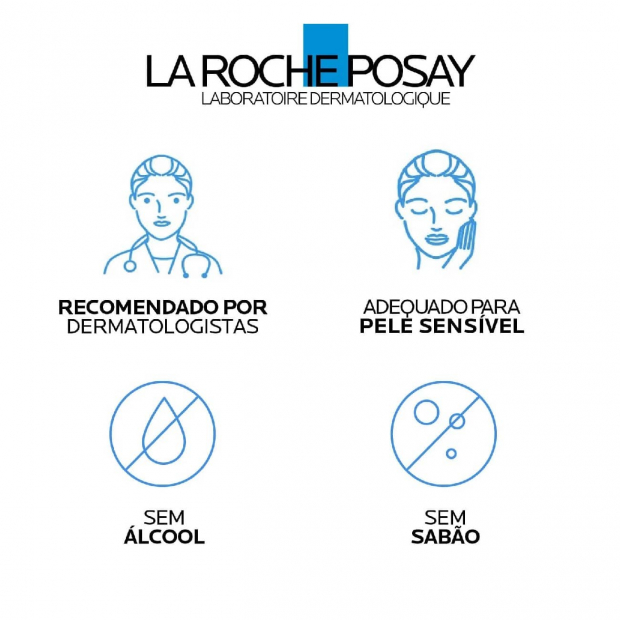 Dermatologicamente testado. Sem álcool, sem perfume e sem sabão.