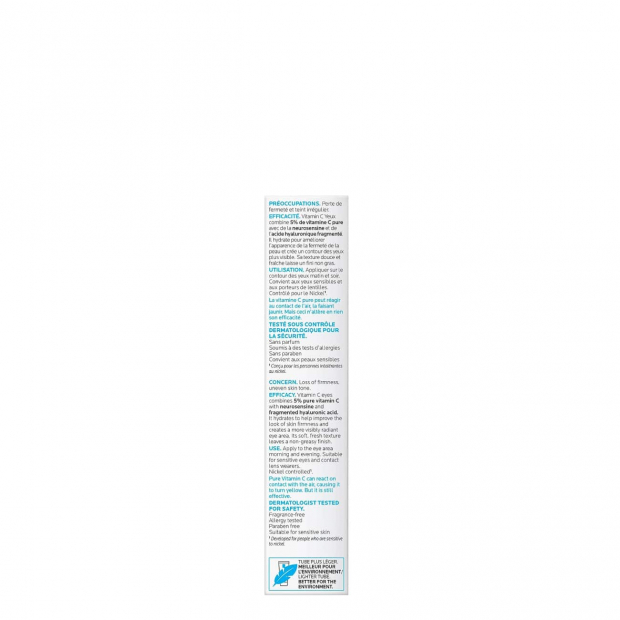 La Roche Posay Pure Vitamin C Creme de Olhos tem uma textura fluida, de rápida absorção com uma combinação de: