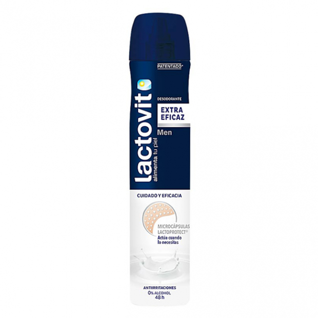 Lactovit Men Extra Eficaz 48h Desodorizante Spray combina microcápsulas Lactoprotect e agentes ativos de leite, para uma ação hidratante, suavizante e protetora.