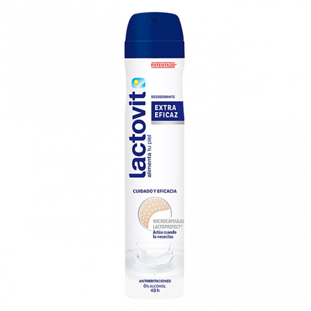 Lactovit Original Extra Eficaz Desodorizante Spray combina microcápsulas Lactoprotect e agentes ativos de leite, para uma ação hidratante, suavizante, apaziguadora e protetora.