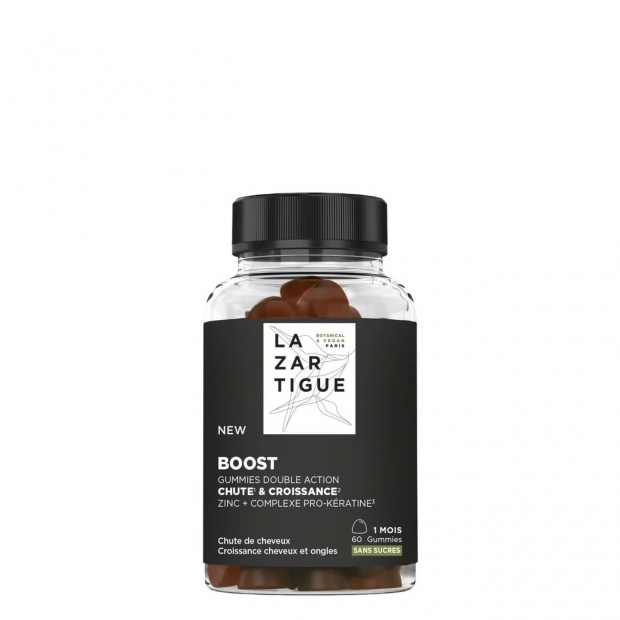 Toma 2 gomas por dia de Lazartigue Boost Antiqueda por um período mínimo de 3 meses.