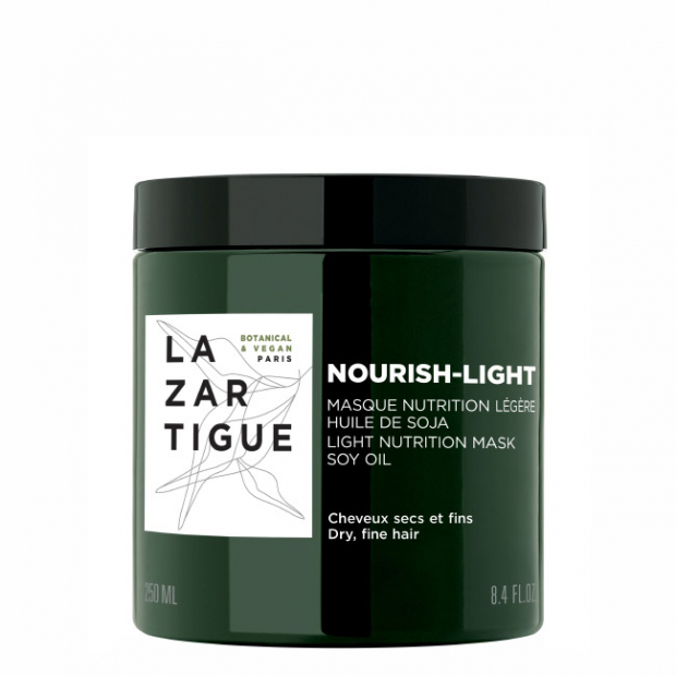 Lazartigue Máscara Nutrição Ligeira tem uma textura cremosa fundente, com complexo de proteinas de soja, para uma ação de nutritiva, fortificante, redensificante, suavizante, flexibilizante e protetora. O cabelo fica mais suave, macio e brilhante.