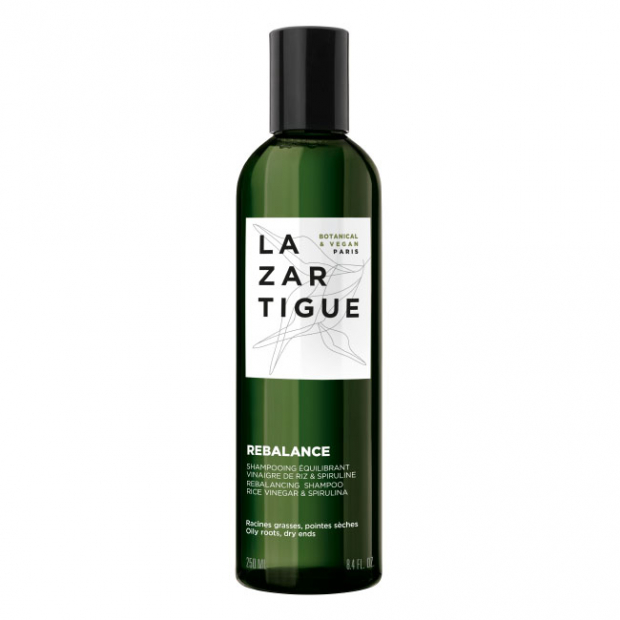 Lazartigue Shampoo Equilibrante tem uma textura em gel (vegan), com uma base lavante, rica em vinagre de frutos e spirulina, para uma ação de limpeza equilibrante, purificante, seborreguladora, hidratante e suavizante.