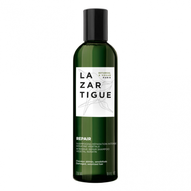 Lazartigue Shampoo Reparação Intensa tem uma textura em emulsão, com base lavante suave, queratina vegetal e ácido hialurónico vegetal (grãos de tamarindo), para uma ação de limpeza reparadora, reestruturante, revitalizante e suavizante.