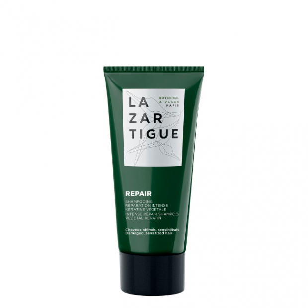 Lazartigue Shampoo Reparação Intensa tem uma textura em emulsão, com base lavante suave, queratina vegetal e ácido hialurónico vegetal (grãos de tamarindo), para uma ação de limpeza reparadora, reestruturante, revitalizante e suavizante.