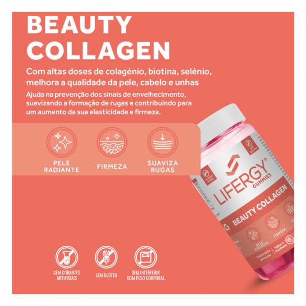 Se procuras um suplemento alimentar que melhora a saúde e beleza da pele, prevenindo o envelhecimento cutâneo, tens de experimentar as gomas Lifergy Gummies Beauty Collagen.