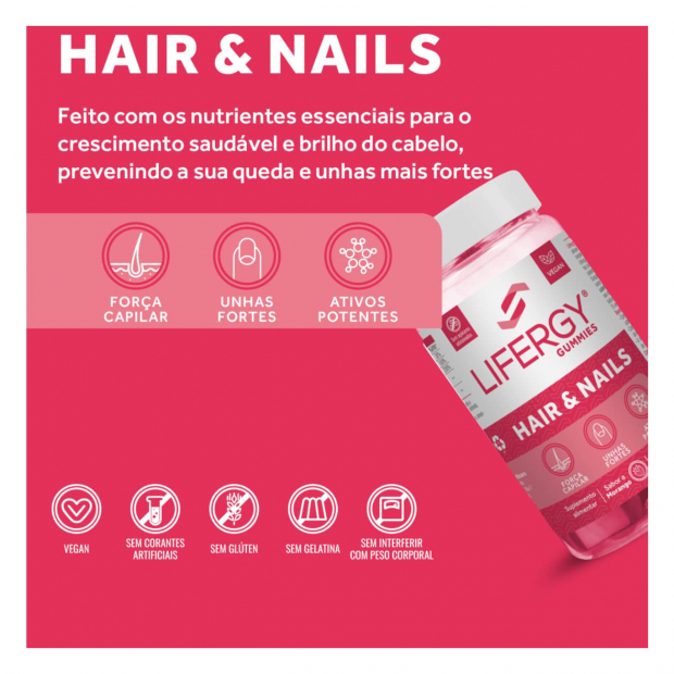 Lifergy Gummies Hair & Nails são gomas mastigáveis, ricas em: