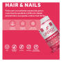 Com nutrientes essenciais para o crescimento saudável e brilho do cabelo, ajuda a prevenir a queda e a tornar as unhas mais fortes, com um delicioso sabor a morango.