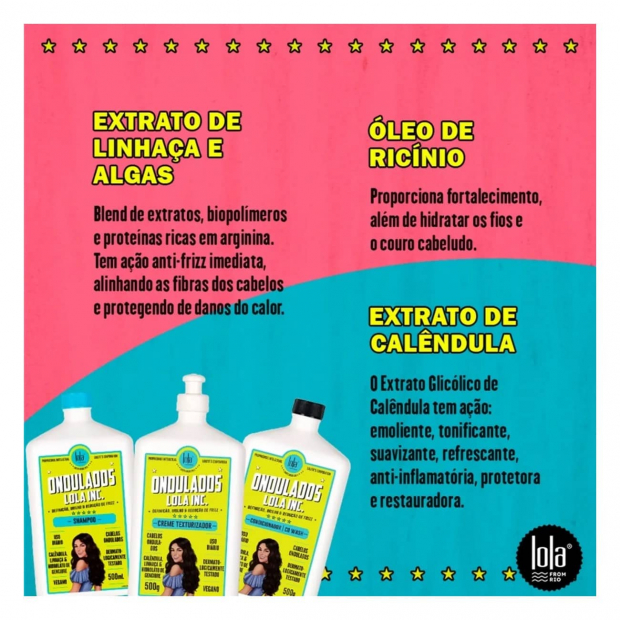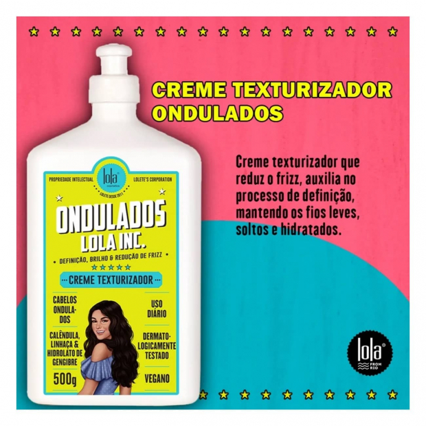 Lola Ondulados Lola Inc. Creme Texturizador tem uma textura cremosa, não oleosa, de rápida absorção e uma fórmula repleta de ingredientes naturais.