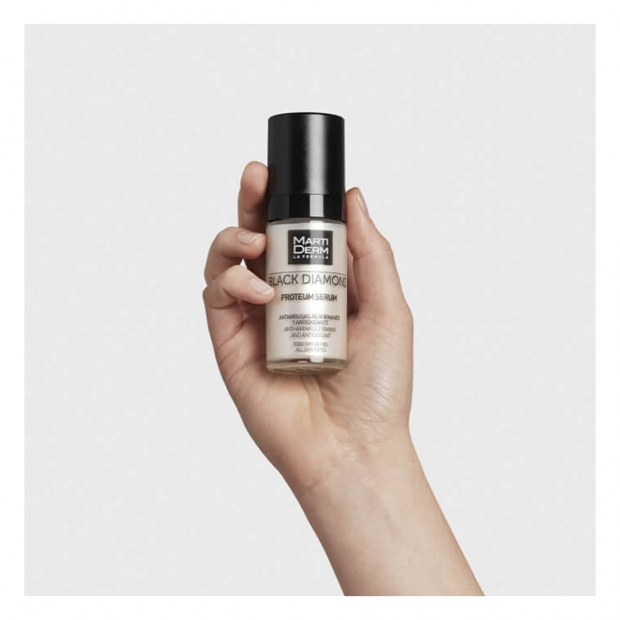 Martiderm Black Diamond Proteum Sérum tem uma textura leve e suave, de rápida absorção, com complexo exclusivo Proteum 89+ (5%), Retinoato de tocoferilo (1%, vitaminas A e E), hexapéptido protetor do ADN, complexo vitamínico (vitamina C, B5 e B3) e filtro solar biológico, para uma ação anti-idade, regeneradora, antioxidante, protetora, estimulante, suavizante e iluminadora.