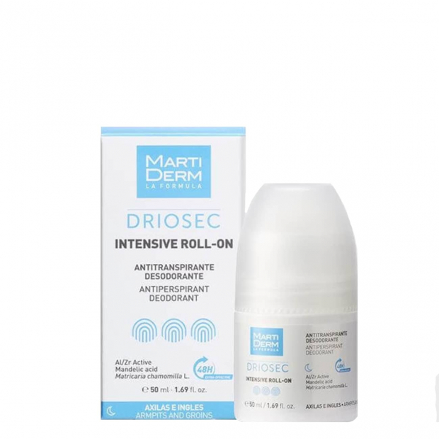 Martiderm Driosec Intensive é desodorizante em roll-on, que ajuda a controlar o excesso de suor das axilas. Controla o suor excessivo e os odores, sem irritar. Limita a proliferação bacteriana. Respeita o equilíbrio cutâneo natural. Mantém a pele perfeitamente protegida o dia inteiro. Ideal para as axilas sensíveis.