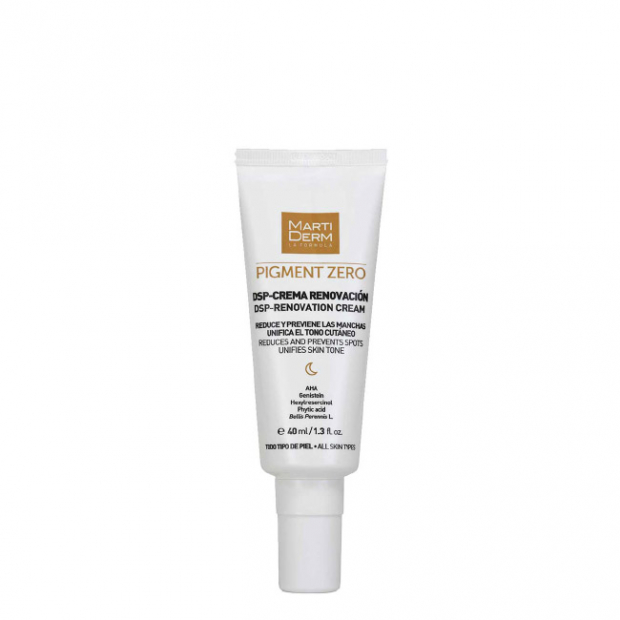 Martiderm Pigment Zero DSP Creme Renovação é um creme que ajuda regenerar, uniformizar e combater as manchas. Proporciona um efeito peeling suave, renovando a pele. Estimula a regeneração celular natural. Atenua a produção de melanina. Atua apenas nas manchas existentes e previne a formação de novas. Prepara a pele para outros cuidados de rosto. De rápida absorção, proporciona proteção contra as agressões externas diárias. Ideal para todo o tipo de pele com manchas.
