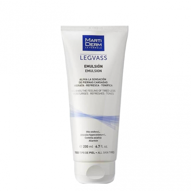 Martiderm Legvass Emulsão é uma emulsão hidratante e refrescante que ajuda a recuperar e aliviar as pernas cansadas. Hidrata, nutre e tonifica. Proporciona uma sensação de bem-estar duradoura. Sem efeito frio, porque não contém álcool, mentol ou cânfora. Proporciona dermoproteção vascular. Ideal para o alívio das pernas cansadas durante a gravidez e para o cuidado do pé diabético.