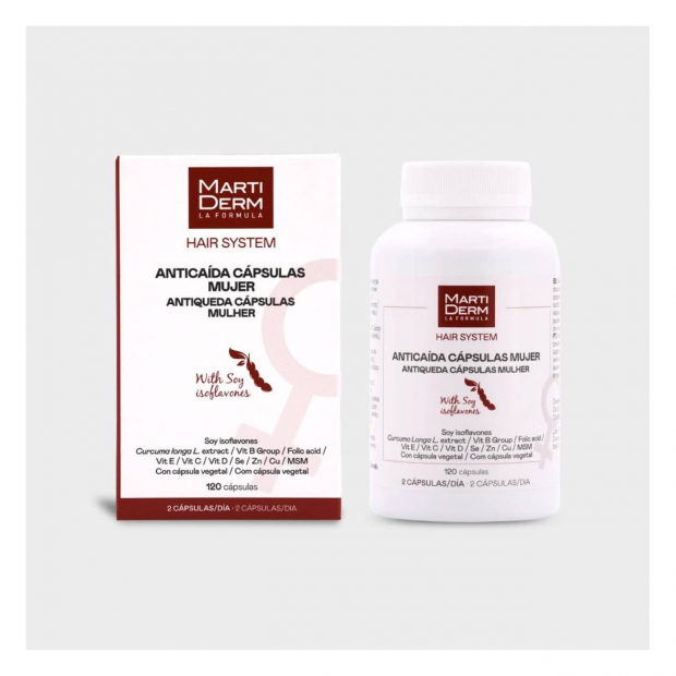 Martiderm Cápsulas Antiqueda Mulher tem uma fórmula completa e eficaz.