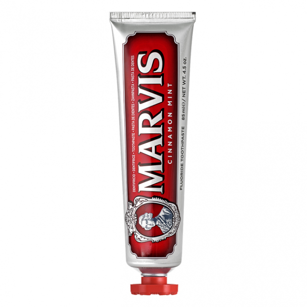 Marvis Cinnamon Mint é uma pasta dentífrica que protege os dentes, enquanto proporciona uma higiene eficaz e branqueadora.