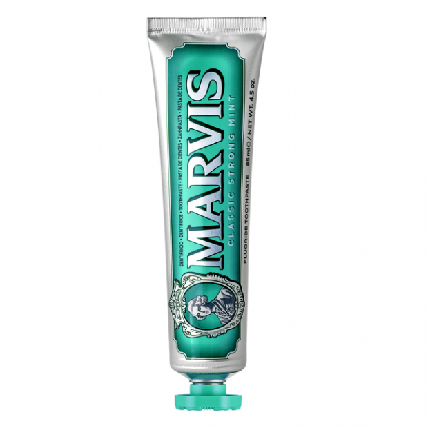 Marvis Classic Strong Mint é uma pasta dentífrica refrescante, que protege os dentes, enquanto proporciona uma higiene branqueadora.