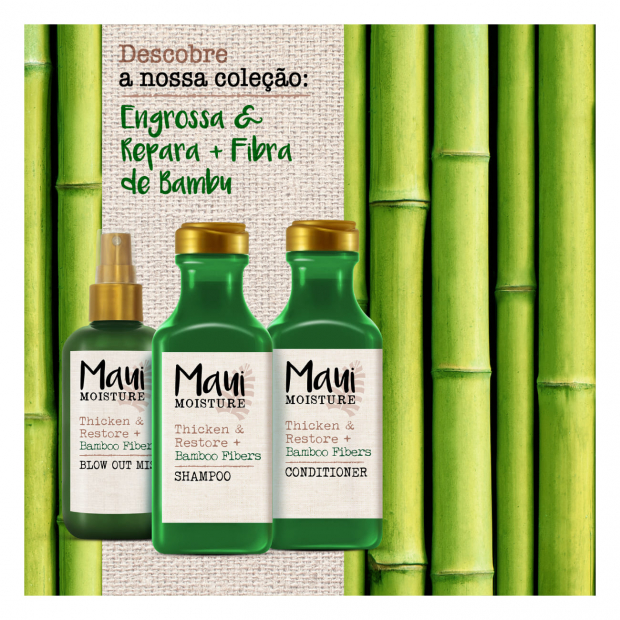 Maui Moisture Bamboo Fibers Amaciador Reparador é ideal para ajudar a desembaraçar e amaciar os cabelos danificados pela exposição constante ao calor e produtos químicos.