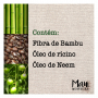 - Com fibras exóticas de bambu, óleo de rícino e óleo de neem para ajudar a fortalecer e reparar o cabelo