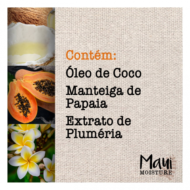 - Contém óleo de coco, manteiga de papaia e extrato de ameixa para ajudar a realçar a forma dos caracóis