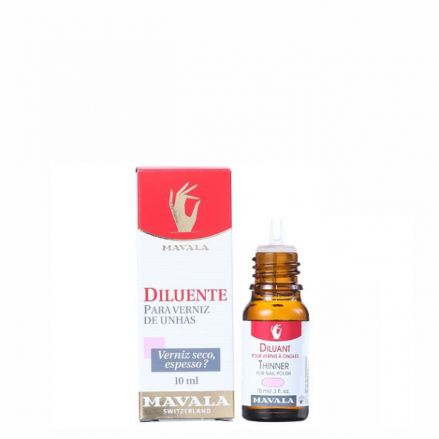 Mavala Diluente Para Verniz tem uma mistura de solventes na sua composição para amolecer os vernizes endurecidos. Sem adição de água e álcool.