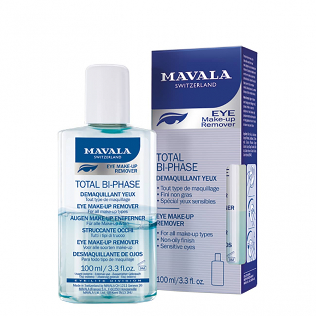 Mavala Total Bi-phase Desmaquilhante de Olhos tem uma textura suave e uma fórmula bifásica que combina: