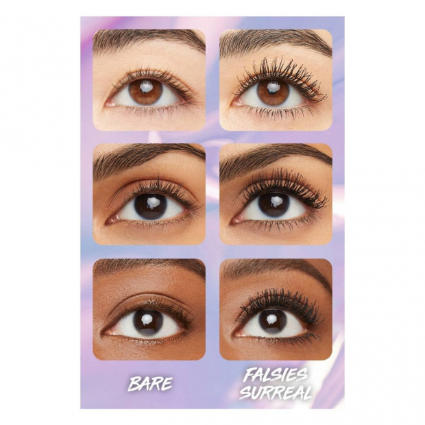 Maybelline The Falsies Surreal tem uma fórmula com fibras mistas longas e curtas, que aderem às pestanas para conferir volume.