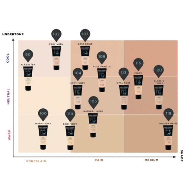 Aplicar Maybelline Fit Me Matte + Poreless Base, de forma uniforme, na pele do rosto e pescoço, com a ajuda dos dedos, de um pincel ou uma esponja aplicadora.