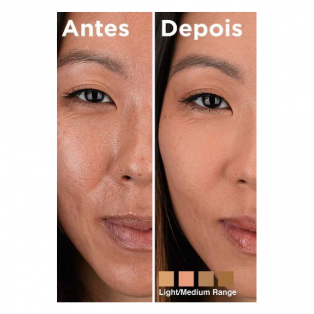 Base 4 em 1 que uniformiza, corrige, realça e matifica naturalmente a pele. Cor 03 Medium.