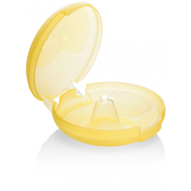 Feito com silicone suave, fino, maleável e sem odor, este acessório resolve problemas de amamentação, como os casos de mamilos invertidos ou rasos, ajudando o bebé a agarrar o peito. Ao mesmo tempo, protege o mamilo da mãe, no caso de gretas, sensibilidade ou dor. O resultado é uma amamentação confortável para a mãe e para o bebé. Ao escolher o tamanho correcto do mamilo de silicone (S,M ou L) deve ter em conta o tamanho do mamilo de modo a que o mamilo de silicone assente confortavelmente sem comprimir e a que o bico encha a cavidade à largura. Também deve ter em conta a boca do bebé. No caso de bebés prematuros, pode ser necessário um tamanho mais pequeno para assegurar que o bebé consegue agarrar o mamilo de silicone, de maneira a que os lábios atinjam base lisa, contra o seio. Não tem sabor nem odor. Disponível em 3 tamanhos: S/16 mm, M/20 mm ou L/24 mm.