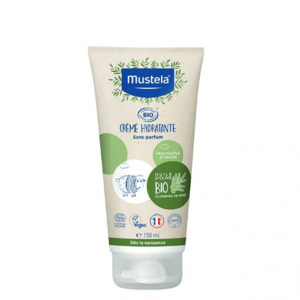Mustela BIO Creme Hidratante tem uma fórmula com ingredientes provenientes da agricultura biológica e que contém azeite orgânico francês, óleo de girassol, aloé vera, glicerina vegetal para hidratar, suavizar, reparar e proteger a pele das agressões externas.