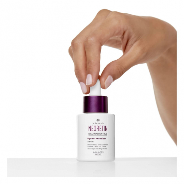 Neoretin Discrom Control Pigment Neutralizer Sérum tem uma textura em sérum, leve e de rápida absorção, que combina:
