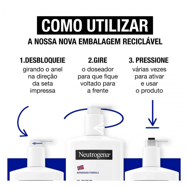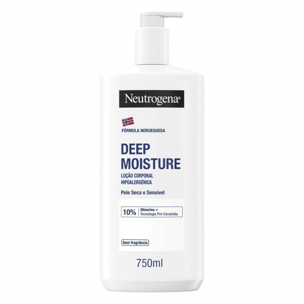Neutrogena Hidratação Profunda Loção Corporal tem uma fórmula desenvolvida com dermatologistas, de elevada tolerância.