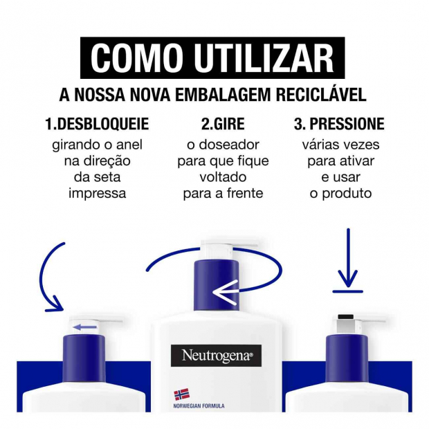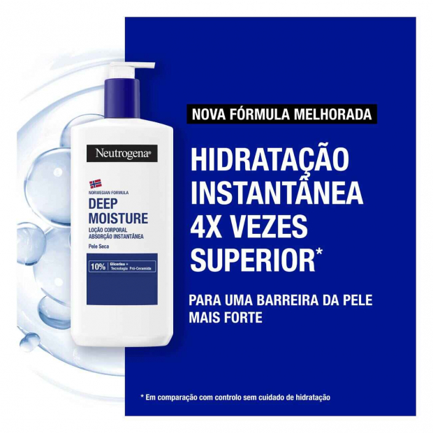 Neutrogena Hidratação Profunda Loção Corporal tem uma textura leve e fundente e a fórmula norueguesa, enriquecida com: