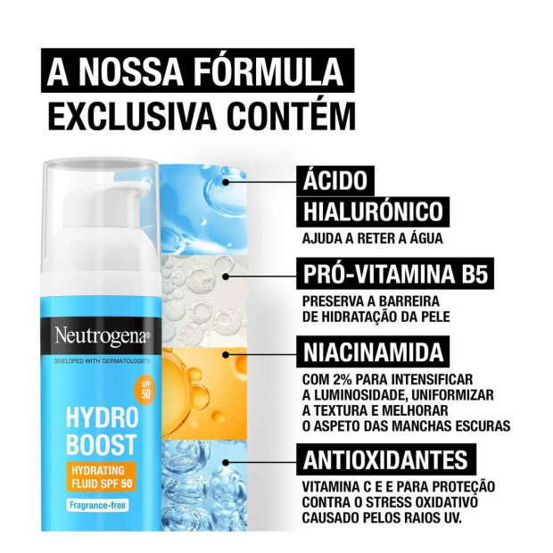 Se procuras um protetor solar leve e hidratante, o Neutrogena Hydro Boost Fluido Hidratante SPF50 é ideal para ti!