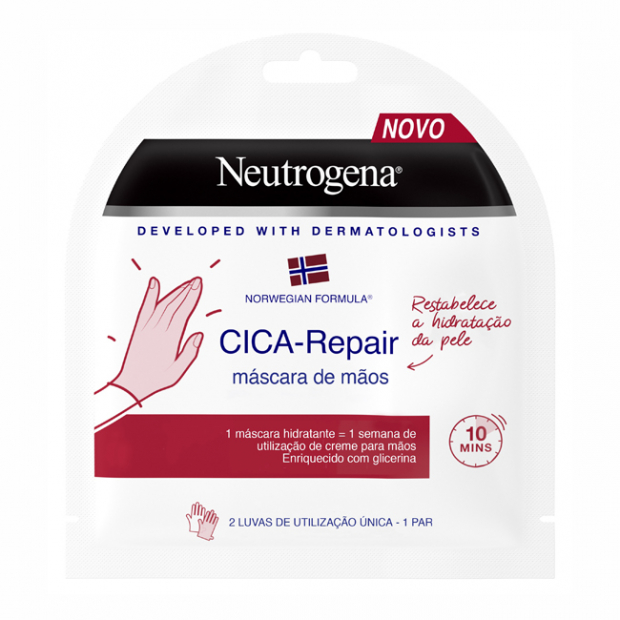 Neutrogena Mãos Cica Repair Máscara é uma máscara em formato de luva com ação hidratante e reparadora para o cuidado da pele muito seca e gretada das mãos. Com uma fórmula rica em glicerina, hidrata as mãos em profundidade e repara as gretas. Proporciona uma sensação de conforto imediata e duradoura.