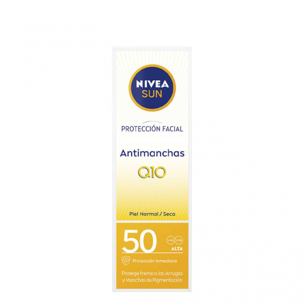 Protege eficazmente o teu rosto contra o aparecimento de manchas e sinais de idade com o Nivea Sun Facial SPF50 Antienvelhecimento e Antimanchas.