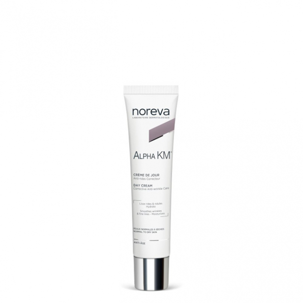 Noreva Alpha KM Creme Dia é um creme de dia que hidrata e repara, enquanto corrige as rídulas e rugas.
