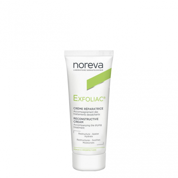 Noreva Exfoliac Creme Reparador é um creme, que ajuda a hidratar e cuidar da pele sensibilizada e ressequida por tratamentos anti-acne. Hidrata e proporciona uma sensação de conforto imediata. Repara intensamente e fortifica a barreira cutânea natural. Reestrutura e restaura o filme hidrolipídico. Devolve a suavidade e conforto à pele. Ideal para pele oleosa e sensível com tendência acneica.
