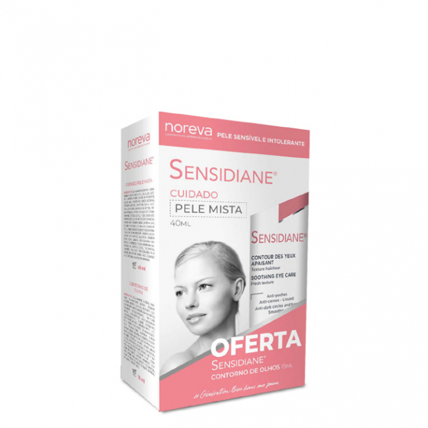 Noreva Sensidiane Kit Pele Mista é um kit que contém 1 creme calmante de rosto (40ml) e 1 creme de olhos (15ml).