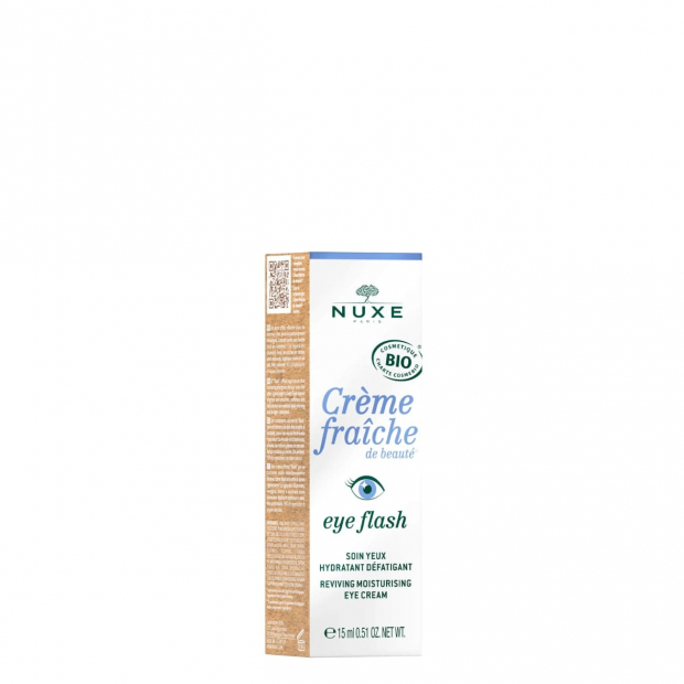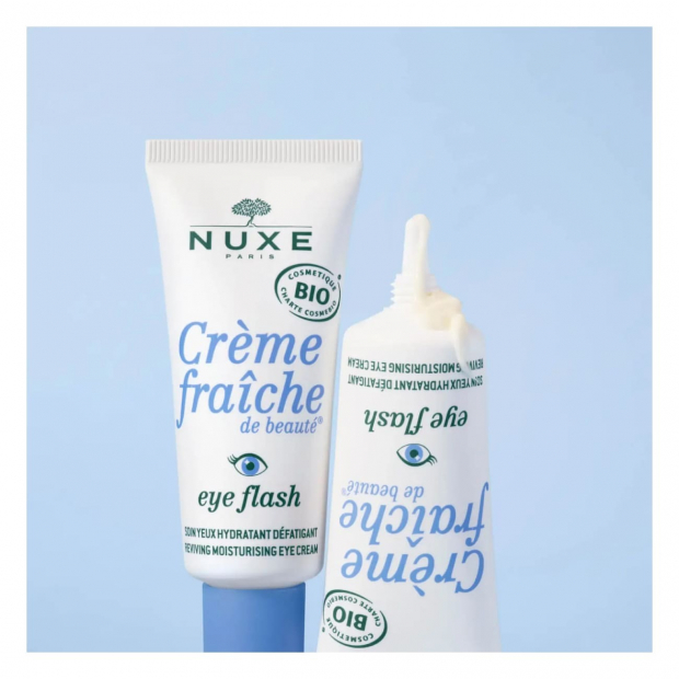 Nuxe Crème Fraîche de Beauté Cuidado Hidratante Olhos tem uma textura fresca e fluida, de rápida absorção, que combina 99% de ingredientes de origem natural: