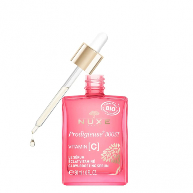 Nuxe Prodigieuse Boost Vitamin [C] Sérum Luminosidade tem uma textura ligeira com uma fragrância subtil, numa fórmula que contém 99% de ingredientes de origem natural.