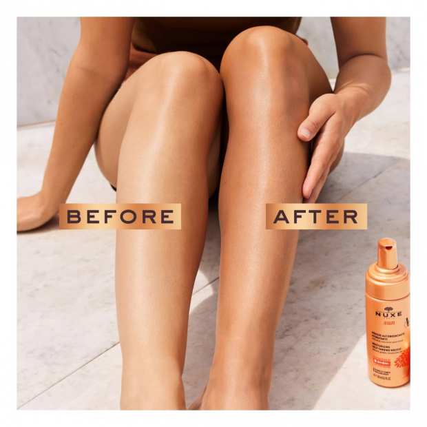 Nuxe Sun Mousse Autobronzeadora tem uma textura em espuma, fácil de aplicar, numa fórmula com 98% de ingredientes de origem natural.