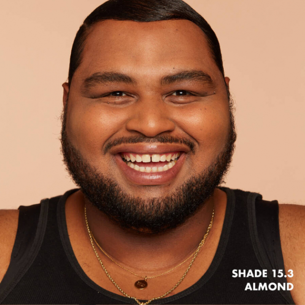 Base líquida ajustável de longa duração. Todos os tipos de peles. Cor Almond.