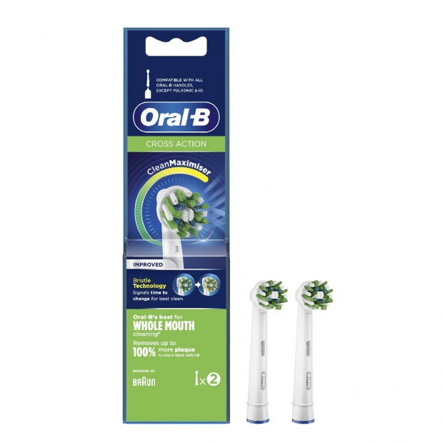 Oral B Crossaction Recarga é compatível com todas as escovas elétricas Oral B. Contém 2 recargas.