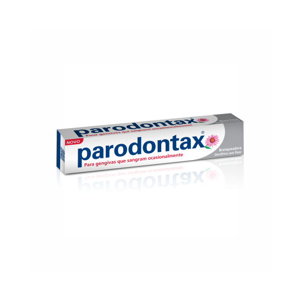 Parodontax Branqueadora é uma pasta dentífrica branqueadora que ajuda a combater o sangramento das gengiva e a restaurar o branco natural dos dentes ao remover delicadamente as manchas superficiais.
