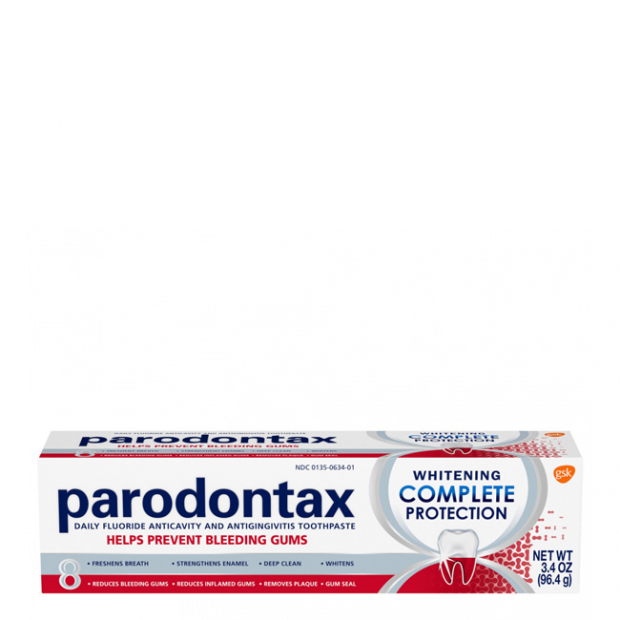 Parodontax Complete Protection Branqueadora é uma pasta de dentes que proporciona a higiene oral adequada e reduz o sangramento, ao mesmo tempo que branqueia.
