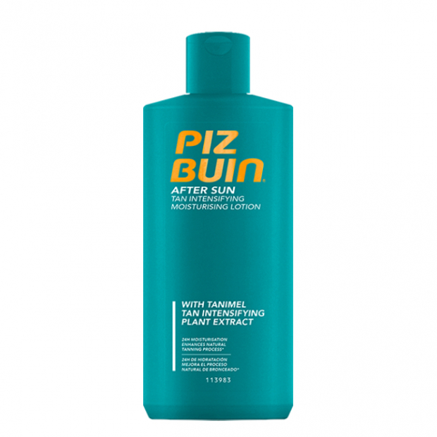 Piz Buin After Sun Loção Intensificadora do Bronzeado tem um efeito hidratante, ajudando a proteger a pele da desidratação e a prolongar o bronzeado. Contém na sua composição tanimel que ajuda o organismo a manter uma produção natural de melanina com ou sem exposição solar, para que o bronzeado seja prolongado. Contém também vitamina E um poderoso antioxidante natural que ajuda a proteger dos radicais livres, responsáveis por danos nas células e pelo envelhecimento prematuro da pele.