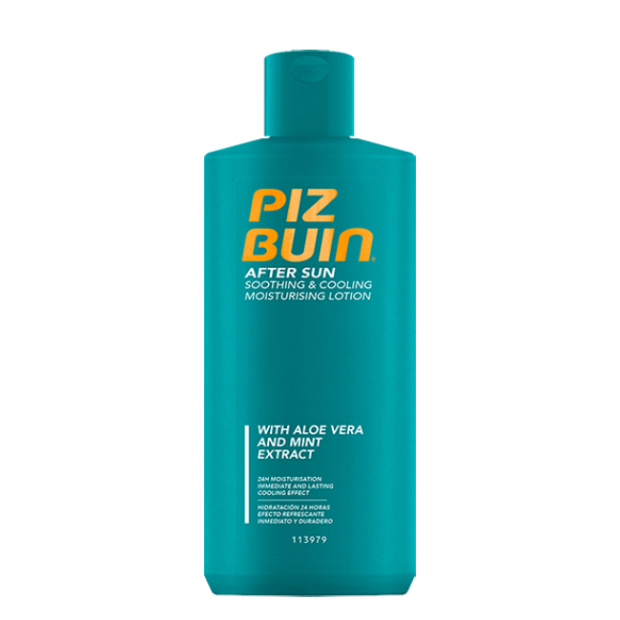Piz Buin After Sun Loção tem uma fórmula rica em tanimel, aloé vera, extrato de menta e agentes emolientes, para uma ação reparadora, hidratante, refrescante, antioxidante e suavizante.