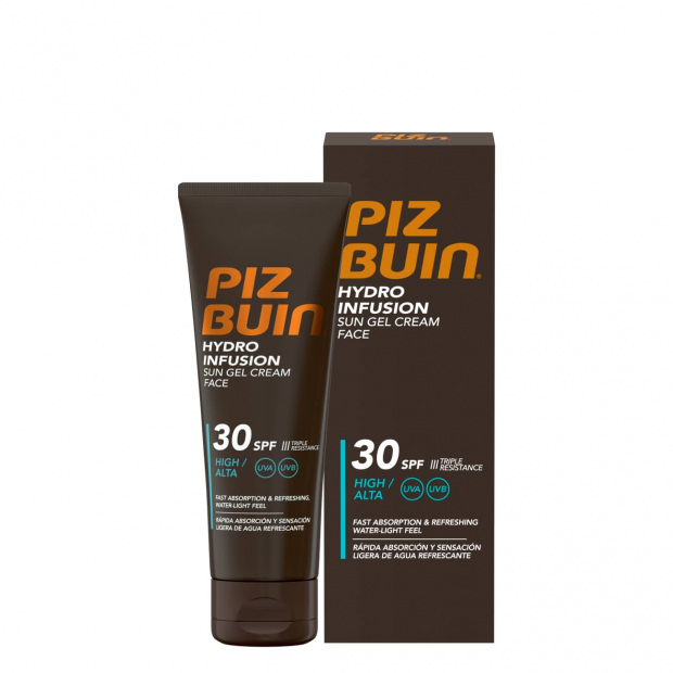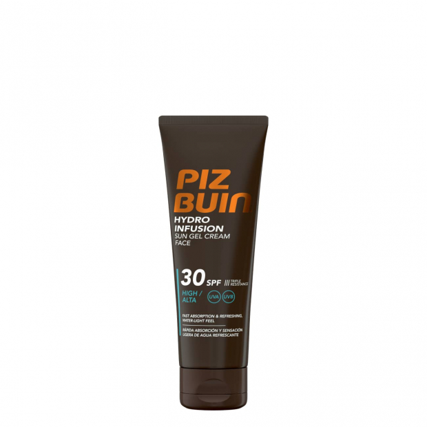 Piz Buin Hydro Infusion SPF30 Gel Creme tem uma textura em gel-creme fundente e fresca, de rápida absorção, que não deixa marcas brancas, nem sensação oleosa.
