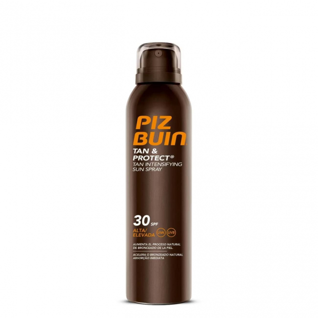 Piz Buin Tan & Protect SPF30 Spray tem uma textura em spray leve e fresca de rápida absorção.